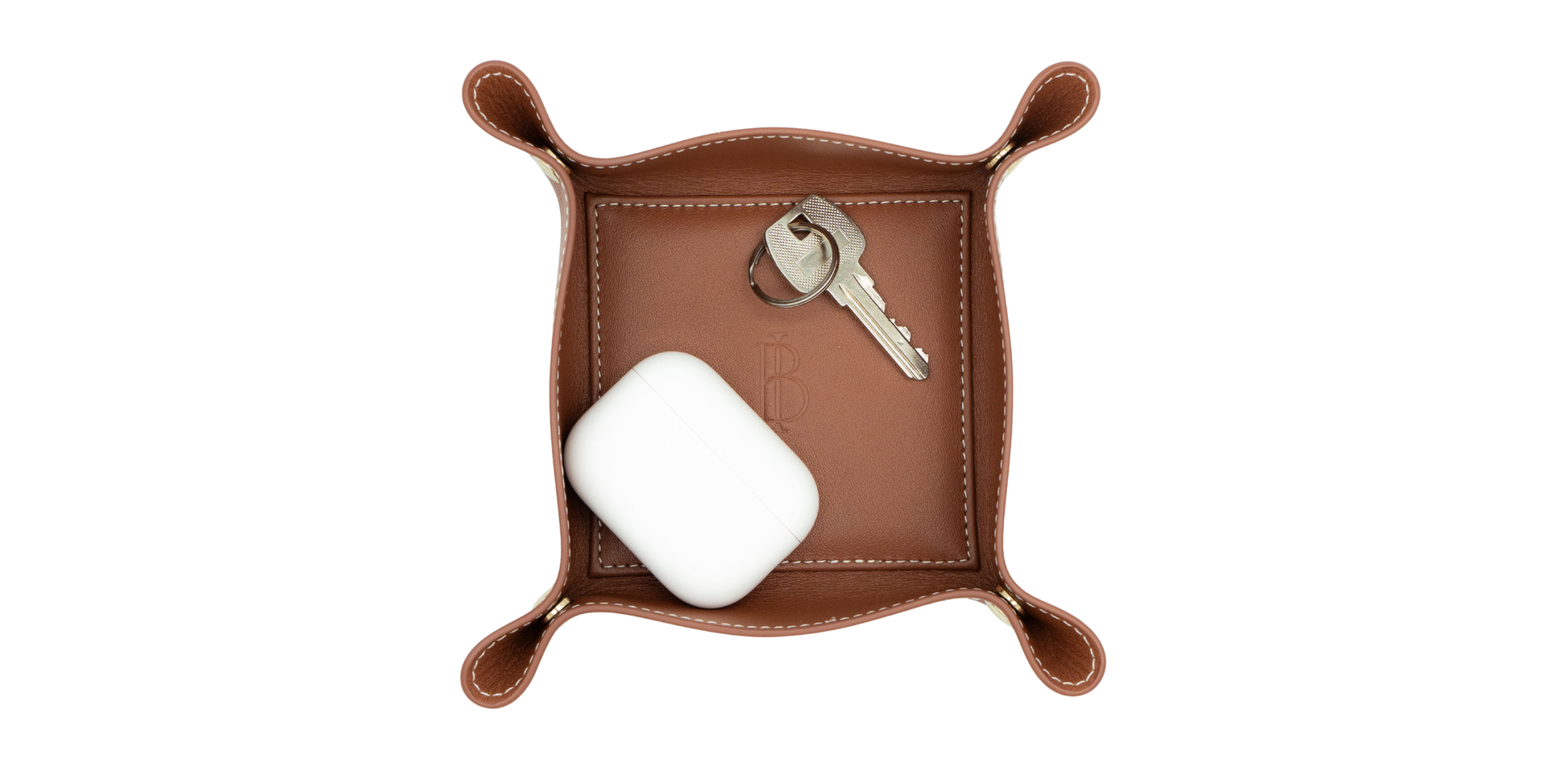 End bedside scatter. Meet the brown full‑grain leather travel jewelry tray that gives your pieces a home, wherever you land.